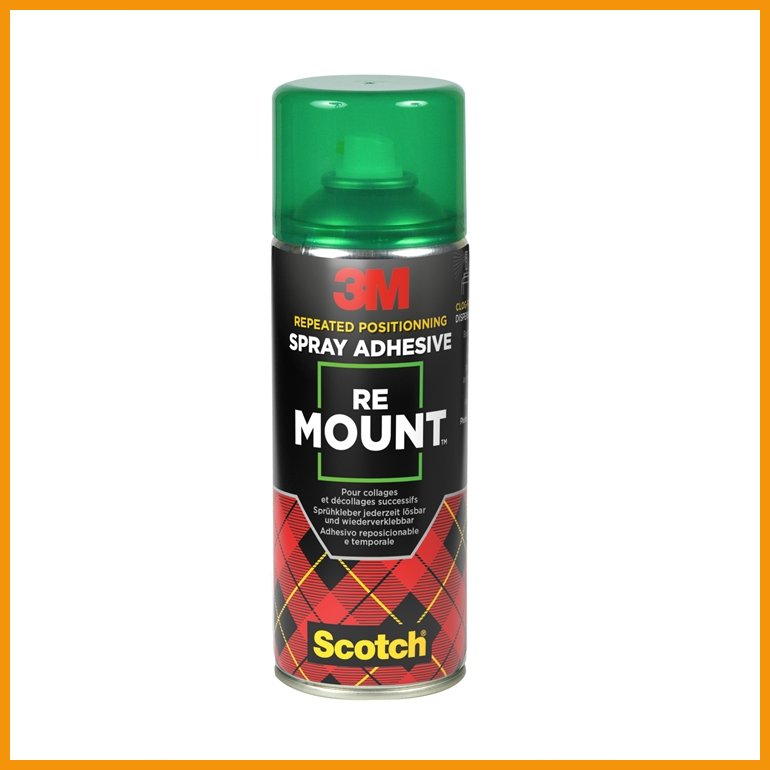 3M Scotch ReMount on kevyesti tarttuva liima tilapäiseen kiinnitykseen. Suihkepullosta hallitusti suihkutettava liima ei kiinnity pysyvästi, joten papereita, julisteita ja kortteja voidaan siirtää paikasta toiseen jälkiä jättämättä. Tuote on omiaan esimerkiksi tilapäisten konseptitöiden, taideprojektien ja kuviokokoelmien, kollaasien ym. esittelyyn.Pakkauskoko: 400 ml