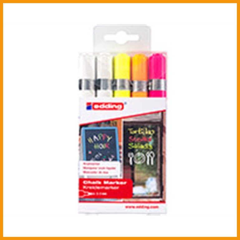 Edding 4095 -liitutussi on suunniteltu lasitaulujen, ikkunoiden ja muiden kovien pintojen merkintään. Hajuton väriaine on peittävää, vesipohjaista ja nestemäistä liitua, jonka voi pyyhkiä kostealla pois miltei kaikilta alustoilta. Korkki ja runko ovat musteen väriset.Musteen väri: keltainen, oranssi, pinkki ja valkoinen (2 kpl)