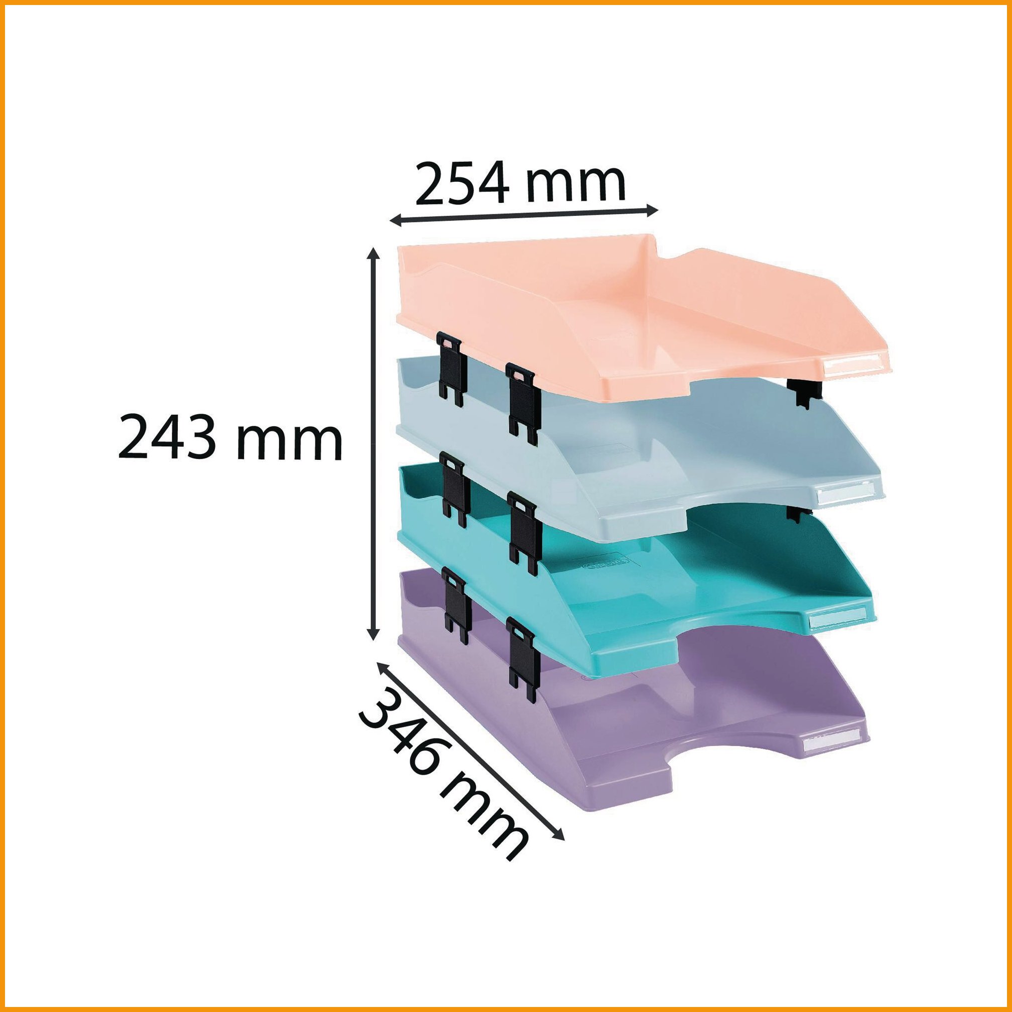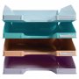 Valmistettu kierrätyskelpoisesta polystyreenistä sarjaan kuuluu 4 kiitävää, pastellin väristä lomakelaatikkoa korotuspaloilla (12 kpl, kuuluu toimitukseen) saat extra korkeutta lomakelaatikoiden väliin pastelliväreinä: vaalean vihreä, vaalean sininen, korallinpunainen, liila lomakelaatikoihin mahtuu a4+ dokumentit voidaan kasata päällekkäin tai porrastetusti mitat: 25,5 x 34,7 x 6,5 cm ? myyntierä: 1Lomakelaatikot toimitetaan 4 kappaleen erissä.