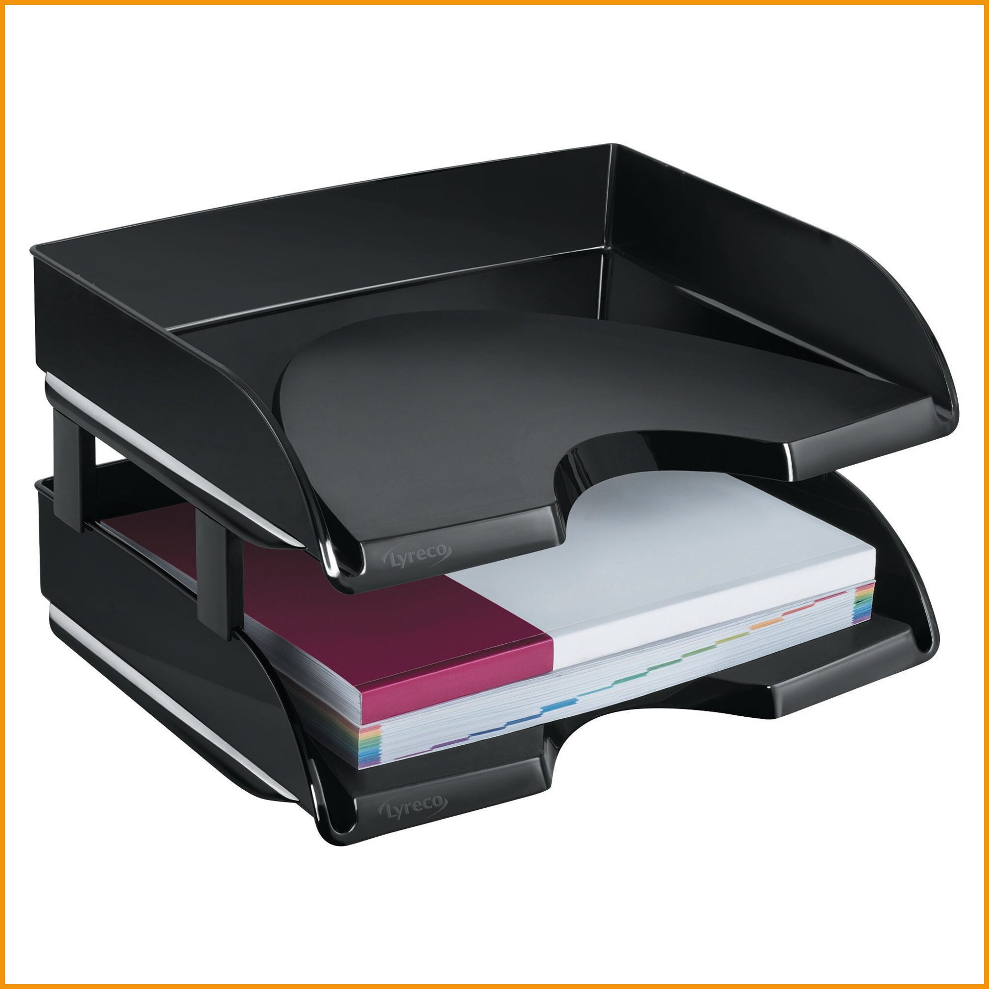 Pidä asiakirjat järjestyksessä ja aina saatavilla lyrecon lomakelaatikoissa. lomakelaatikot voidaan pinota päällekkäin tai porrastetusti, jolloin saat järjestettyä paperit osioihin. pitkältä sivulta auki olevassa laatikossa on käytännöllinen leveäksi muotoiltu etuosa, josta asiakirjat on helppo ottaa ja laittaa takaisin. Lomakelaatikon mitat ovat: 35,1 x 26 x 6,9 cm.Lomakelaatikko Lyreco pitkä sivu auki musta on korkeatasoinen toimistotuote, jonka verkkokauppatilauksen toimitus perille kestää 1-2 päivää. Muistathan, että Toimitus on ilmainen kaikilla verkkokaupan ostoksilla, joiden hinta on yli 140 €. Meiltä voit tilata laskulla ja ilman rekisteröitymistä.