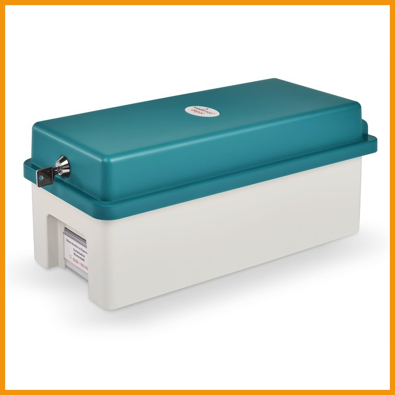 Lääkintävälineen etenkin kotihoidon tarpeisiin suunniteltu lukittava lääkelaatikko auttaa estämään lääkkeiden väärinkäyttöä ja katoamista. Laatikko on varustettu nimikointikehyksellä.Mitat: 38 x 16 x 16 cm.