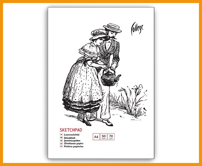 Lyhyeltä sivultaan liimattu luonnoslehtiö luonnosteluun ja suttupaperiksi.Mitat: A4