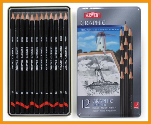 Derwent Graphic on korkealaatuinen lyijykynä perinteisellä kuusikulmaisella rungolla ja vahvalla lyijyllä. Sekä harrastelijoille että ammattilaisille suunnitellut kynät sopivat niin yksityiskohtaiseen ja tarkkaan työskentelyyn, kuten muotokuviin, kuin pehmeisiin viivoihin ja sävytyksiinkin.Lyijyn kovuudet: 6B - 4H