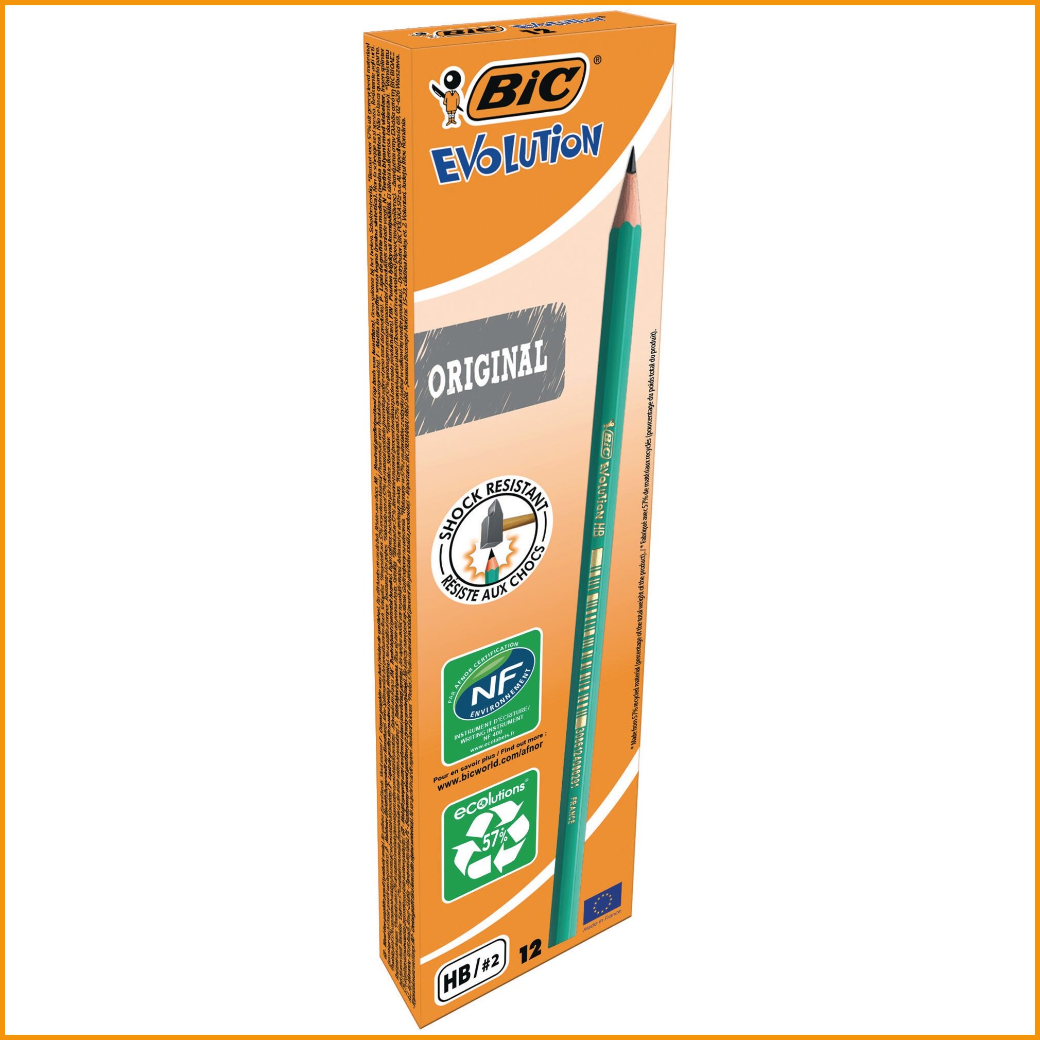 Bic evolution 650 on kuusikulmainen, suorapäinen lyijykynä. Tämän perus lyijykynän lyijynkovuus on (HB). Se on yleisimmin käytetty lyijyn kovuus. puuton, pirstoutumaton lyijykynä on valmistettu 57-prosenttisesti kierrätysmateriaaleista. kynän hb-lyijy on erittäin kestävää sen ympärille upotetun suojavaipan ansiosta. myyntierä: 1 pkt (12 kpl) / 144 pkt.Lyijykynät toimitetaan 12 kappaleen erissä.