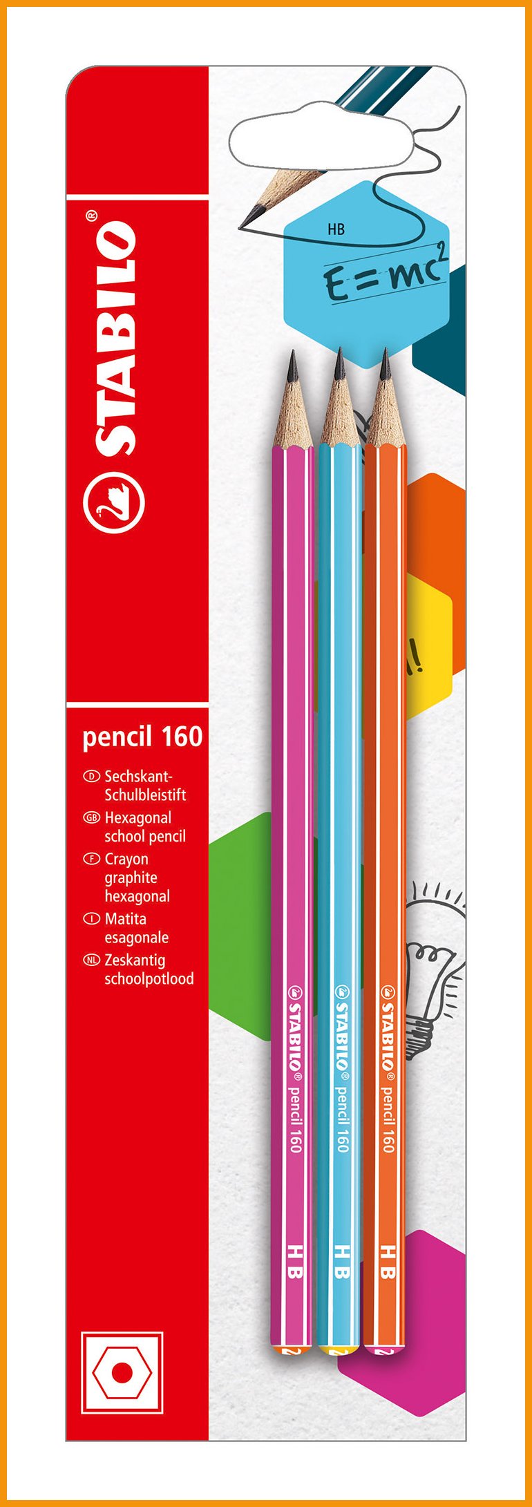 Stabilo 160 HB on lyijykynä, jossa on perinteinen kuusikulmainen runko ja erittäin kestävä lyijy. Kynä soveltuu yhtä lailla niin kirjoittamiseen, piirtämiseen kuin luonnosteluunkin. Pakkauksessa on kolme kynää erivärisillä rungoilla.Kaikki STABILOn puiset kynät valmistetaan FSC- tai PEFC-sertifioidusta materiaalista.