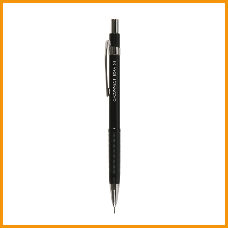 Q-Connect Bora on ohutrunkoinen lyijytäytekynä, jossa on metallinen sisäänpainuva joustokärki, kiinteä PVC- ja lateksivapaa pyyhekumi ja metallisisus. Sisäänpainuva kärki ehkäisee terän katkeamista ja mahdollistaa lyijyn käytön koko pituudeltaan.Lyijyn paksuus: 0,5 mm.
