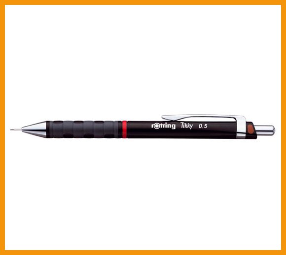 Ergonomisessa Rotring Tikky -lyijytäytekynässä on kolmionmuotoinen, kumipintainen runko ja lyijyn paksuuden kertova väritäplä. Mukana menossa myös metallinen taskupidike. Jäykkäputkinen kynä soveltuu erityisesti piirtämiseen.Lyijyn paksuus: 0,5 mm.