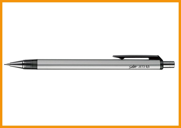Scriva Jet3 on alumiininen, kumisella otepinnalla ja joustavalla kärjellä varustettu lyijytäytekynä. Kynän korkin alla on kiinteä pyyhekumi ja sen kärki ja taskupidike ovat metallia.Lyijyn paksuus: 0,7 mm