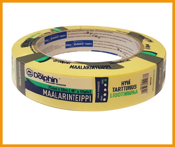 Blue Dolphin MT-6273 on yleiskäyttöön tarkoitettu maalarinteippi kumiliimalla. Hyvin kiinnittyvä teippi on helppo irrottaa ilman liimajäänteitä vielä kolmen vuorokauden kuluttua.Mitat: 19 mm x 50 m
