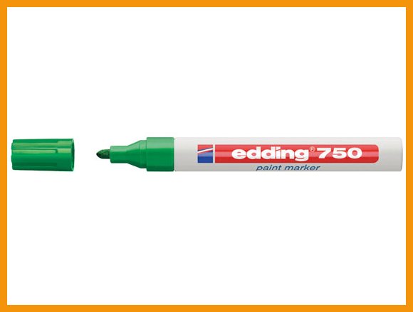 Edding 750 on vankka vihreä maalikynä monipuoliseen ja vaativaan käyttöön. Kynässä on kestävä alumiinirunko ja muovinen suojakorkki. Kynään on saatavana vaihtokärkiä.Pysyvä ja lähes hajuton muste kestää sekä vettä, valoa että kuumuutta (400 °C asti) eikä sisällä tolueenia tai xyleeniä. Peittävä muste kuivuu nopeasti ja tarttuu siististi kaikenlaisille pinnoille, kuten paperille, kartongille, muoville, metallille, puulle, nahalle ja lasille.