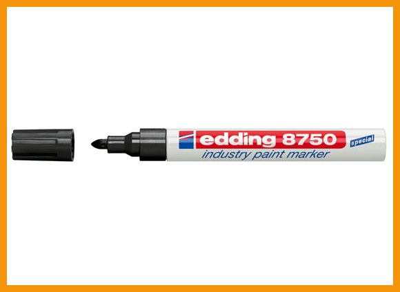 Edding 8750 on vankka musta maalikynä monipuoliseen ja vaativaan käyttöön, mutta erityisesti rasvaisille, pölyisille, tummille tai läpinäkyville pinnoille. Kynässä on kestävä alumiinirunko ja muovinen suojakorkki.Tavanomaistakin pysyvämpi maalinkaltainen pigmenttimuste kestää sekä vettä että valoa, kuivuu nopeasti ja tarttuu siististi kaikenlaisille pinnoille, kuten paperille, kartongille, muoville, metallille, puulle, nahalle, lasille ja kumille, kuten autonrenkaille.