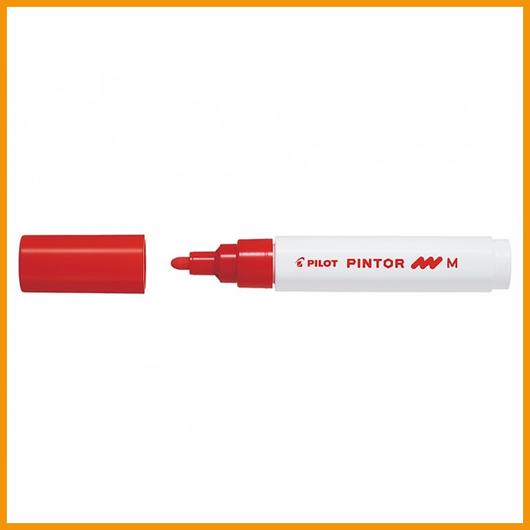 Pilot Pintor Paint Marker punaisessa maalikynässä on veden- ja valonkestävä vesipohjainen muste, joka kuivuu nopeasti ja tarttuu useimmille pinnoille, kuten paperille, lasille, muoville, keramiikkaan, metalliin ja tekstiileihin. Xyleenitön ja peittävä muste on pysyvää huokoisilla pinnoilla, mutta liukenee sileiltä alkoholin tai veden avulla.Tuotetta on saatavana useilla erikokoisilla kärjillä ja kaikissa sateenkaaren väreissä.