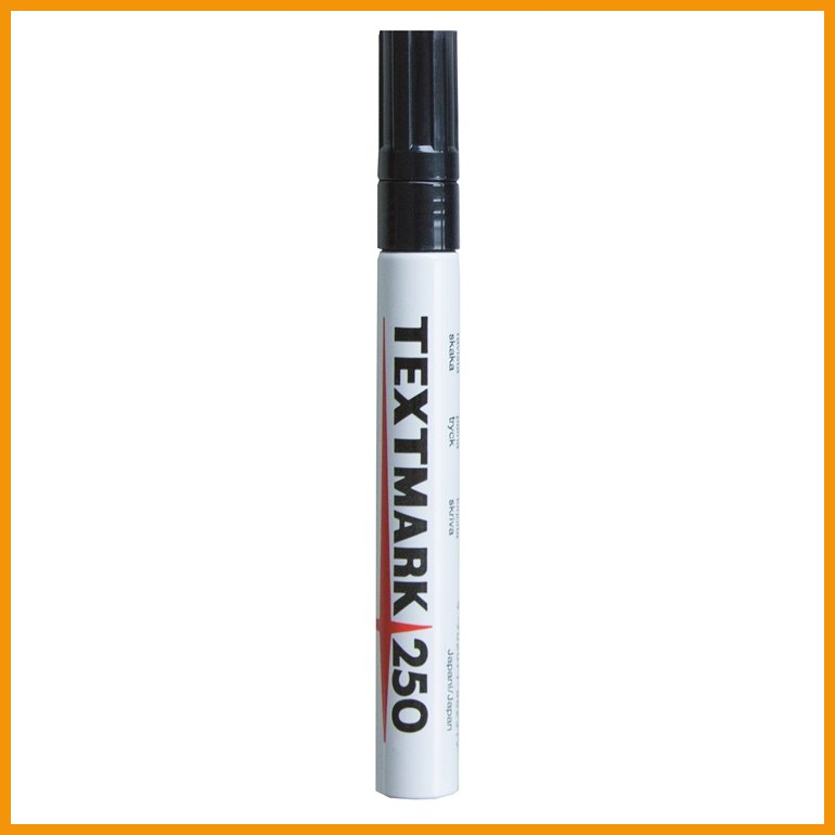Textmark 250 on suomalaisten erityissuosion saavuttanut musta maalikynä, jolla on jo yli 50 vuoden historia ja vähintään yhtä menestyksekäs tulevaisuus. Käyttöä kestävässä kynässä on alumiinirunko, vankka akryylikärki ja suojakorkki.Pysyvä ja hyvin peittävä muste ei tahraa, on sekä valon- että vedenkestävää.