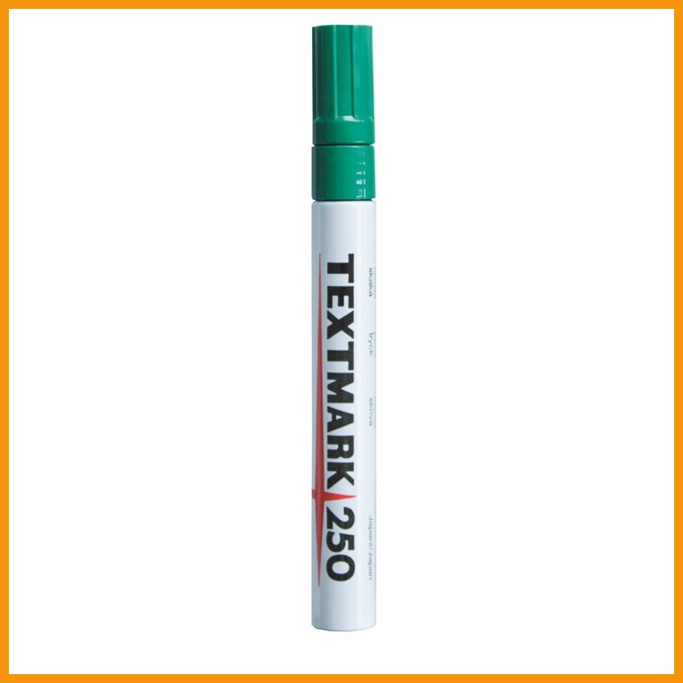 Textmark 250 on suomalaisten erityissuosion saavuttanut vihreä maalikynä, jolla on jo yli 50 vuoden historia ja vähintään yhtä menestyksekäs tulevaisuus. Käyttöä kestävässä kynässä on alumiinirunko, vankka akryylikärki ja suojakorkki.Pysyvä ja hyvin peittävä muste ei tahraa, on sekä valon- että vedenkestävää.