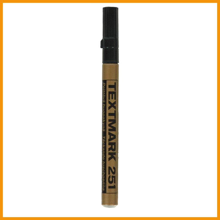 Textmark 251 on suomalaisten erityissuosion saavuttanut kulta maalikynä, jolla on jo yli 50 vuoden historia ja vähintään yhtä menestyksekäs tulevaisuus. Käyttöä kestävässä kynässä on vankka kärki ja suojakorkki.Pysyvä ja hyvin peittävä muste on sekä valon- että vedenkestävää.