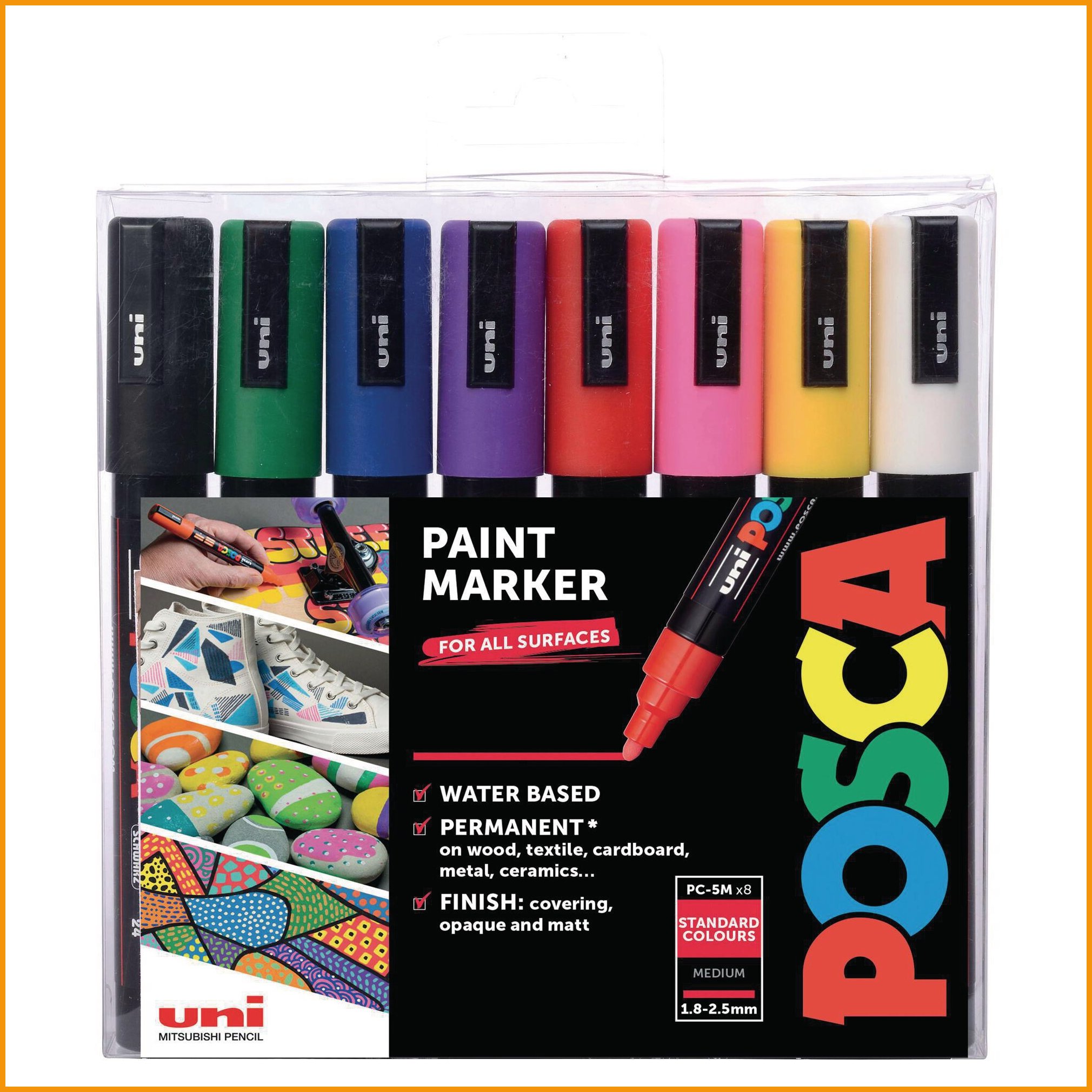 Hajuton ja sekä valon- että vedenkestävä uni posca pc-5m -maalikynä soveltuu monille erilaisille pinnoille, kuten muovi, metalli, lasi, valokuva ja paperi. lajitelmassa on kahdeksan väriä: valkoinen, musta, keltainen, punainen, vihreä, sininen, vaaleansininen ja pinkki. pyöreä kärki, viivan leveys 1,8-2,5 mm. Maalikynien minimitilaus 1 paketti = 8 kpl. Tukkupakkauksessa 50 kpl.Maalikynät toimitetaan 8 kappaleen erissä.