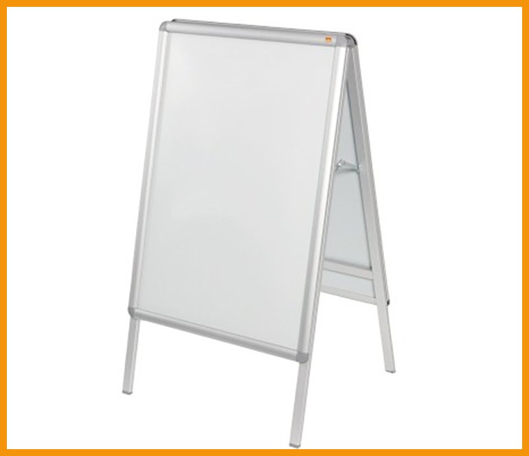 Hinta 166,05€ / kplNobon tukevassa a-telineessä julisteet ja ilmoitukset ovat säältä suojassa heijastamattoman pvc-suojamuovin alla. alumiiniset snap- kehykset tekevät julisteen vaihtamisesta helppoa ja luovat julisteelle ammattimaisen viimeistelyn. mitat: 475 x 890 x 70 mm, paino 4,6 kg.