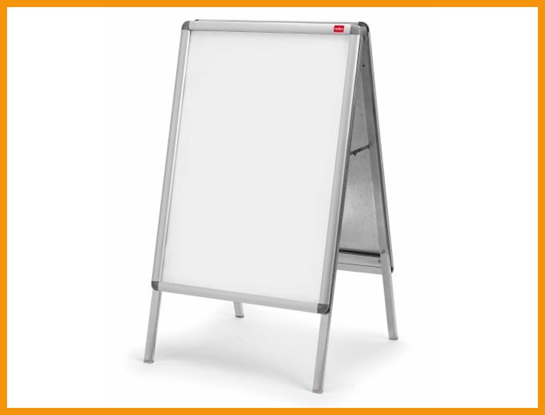 Hinta 166,05€ / kplNobon tukevassa a-telineessä julisteet ja ilmoitukset ovat säältä suojassa heijastamattoman pvc-suojamuovin alla. alumiiniset snap- kehykset tekevät julisteen vaihtamisesta helppoa ja luovat julisteelle ammattimaisen viimeistelyn. mitat: 475 x 890 x 70 mm, paino 4,6 kg.