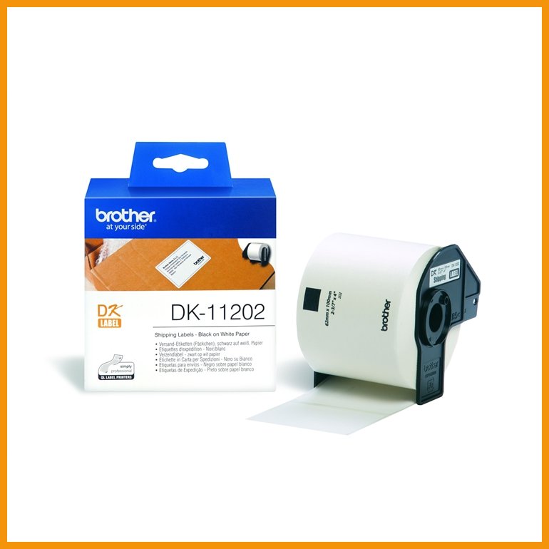 Brother DK-11202 on valmiiksi muotoiltu maksitarra soveltuviin Brother-tarratulostimiin. Maksitarra soveltuu erityisen hyvin lähetystietojen, logojen, viivakoodien ja vierailijakorttien tulostamiseen.