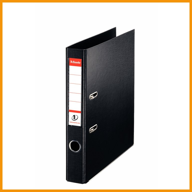 Esselte Power No.1 musta mappi on valmistettu tukevastakartongista ja pinnoitettu PP-muovilla. Sen patentoitu mekanismi kantaa jopa 2 kg:n painon ja sulkeutuu täydellisesti myös mapin ollessa täysi. Sekä sormikolo, kansion alareuna että kannen lukitusreiät on vahvistettu metallilla. Selkämyksessä on etikettitasku ja 158 x 30 mm etiketti.Tuotteen valmistuksessa käytetty kartonki on FSC-sertifioitua.