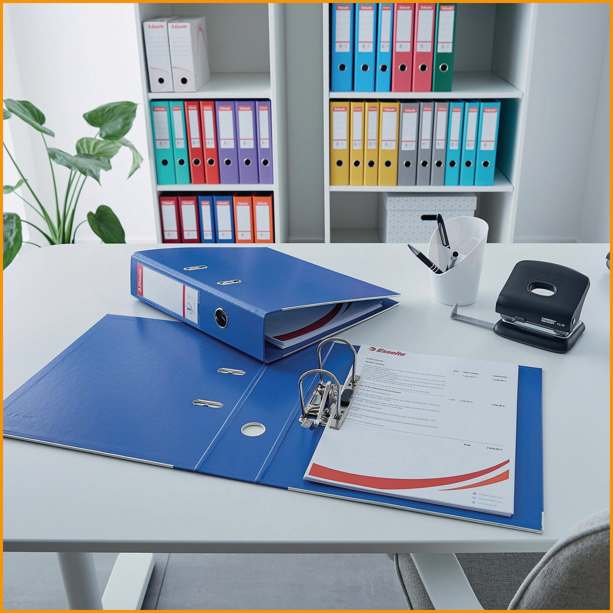 Mappi Esselte no1 a4 75mm pp sininen. Esselte sininen mappi No.1 on suunniteltu ammattikäyttöön. Mapissa on patentoitu lukitusmekanismi (kantavuus 2 kg), jonka ansioista mappi sulkeutuu ja lukittuu täydellisesti myös mapin ollessa täynnä. Esselten mappi on käytännöllinen ja kestävä, sillä siinä on kansilukko, mekanismiurat kannessa, tasku vaihdettaville selkäetiketeille, metallireunat ja metallivahvistettu sormikolo, joka helpottaa mapin ottamista hyllystä. PP-muovista valmistetun, FSC-sertifioidun mapin kapasiteetti on 500 arkkia. Selän leveys: 75 mm. Pakkauksessa on 10 Mapin toimitus perille asti kestää 1-2 päivää. mappia. Muistathan, että hinnaltaan yli 140 € verkkokauppatilaus toimitetaan aina ilmaiseksi!Mappi Esselte no1 a4 75mm pp sininen tuotetiedot