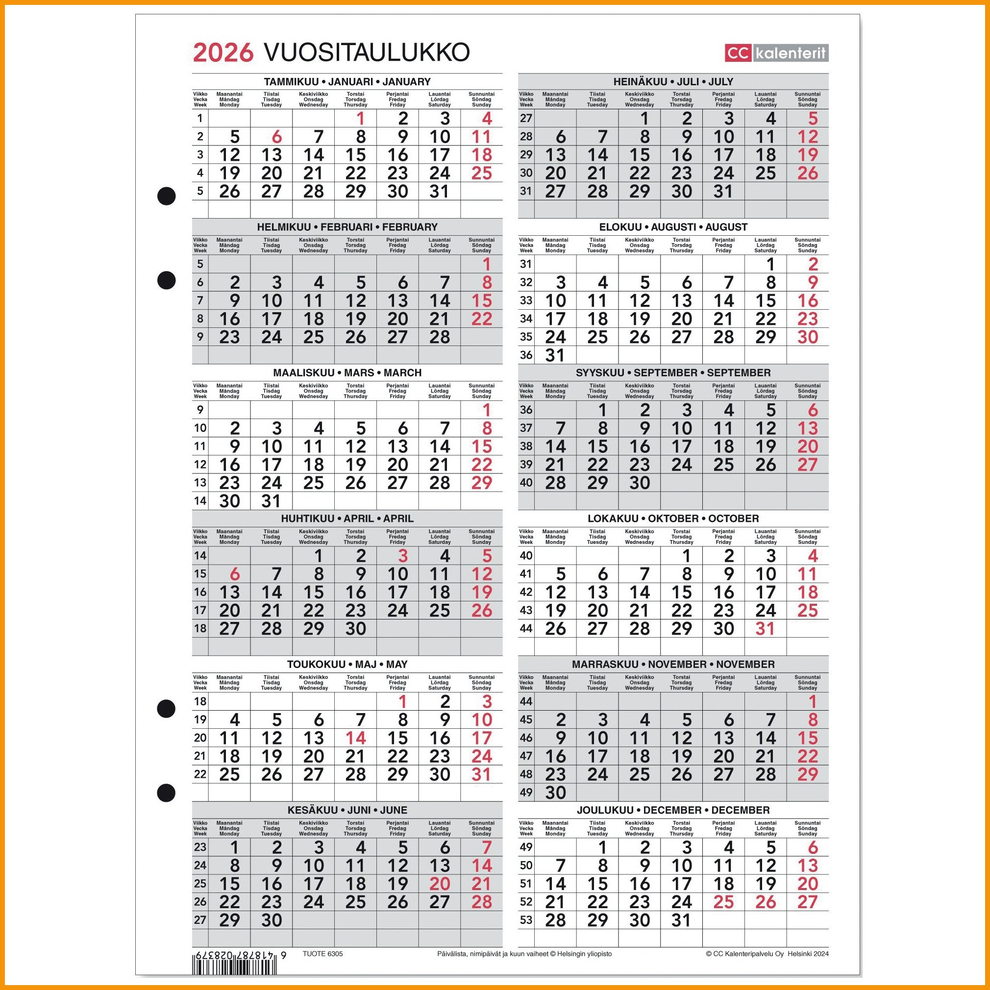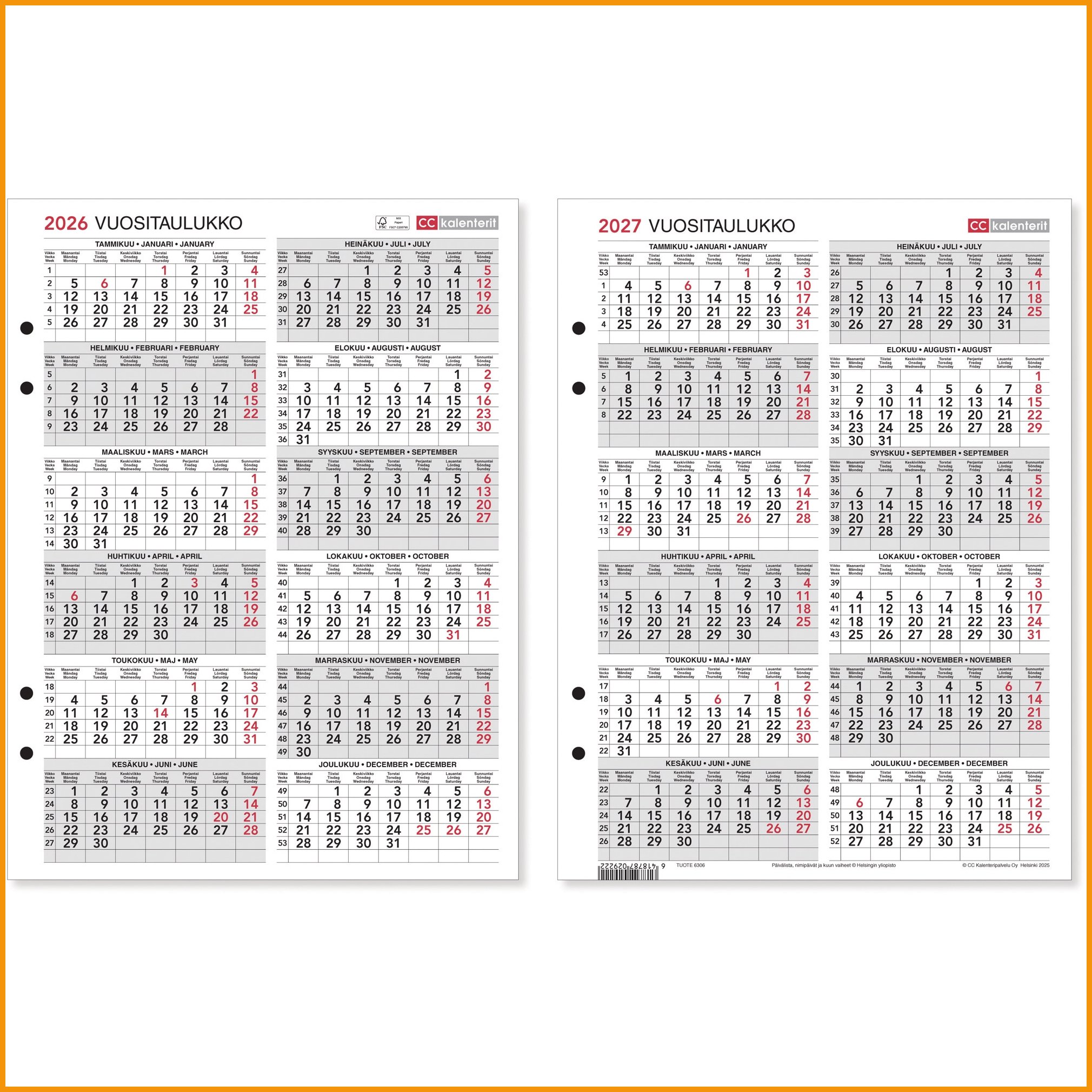 Mappikalenteri 2026 Cc 6306 vuositaulukko-2027 224 x 297mm tuotetiedot