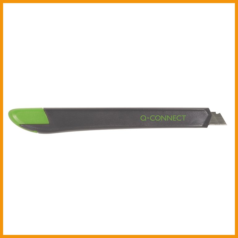 Q-CONNECTin 9 mm Light Duty -mattoveitsi soveltuu mm. paperin, kartongin ja kalvojen leikkaamiseen. Veitsessä on teränlukitusmekanismi ja vaihdettava 13-osainen katkoterä, joita löydät lisää verkkokaupastamme koodilla 252014.