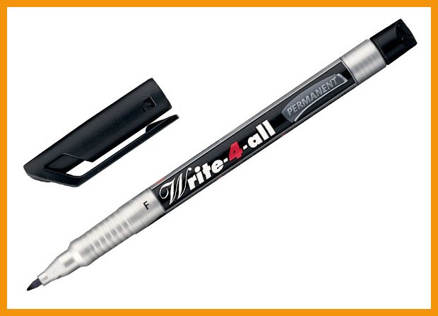 Haastaviin olosuhteisiin suunnitellulla Stabilo Write-4-All -merkintäkynällä jätät pysyvän jäljen miltei kaikenlaisille pinnoille ja kaikenlaisissa olosuhteissa kuumasta pakkaseen ja vesisateeseen.Kynän nopeasti kuivuva ja pysyvä muste kiinnittyy todistetusti yli tuhannelle erilaiselle pinnalle. Jäykät ja kestävät fine- ja super fine -kärjet soveltuvat parhaiten koville pinnoille, kuten lasille, muoville (myös CD-levyille), metallille ja keramiikalle. Suojakorkissa on taskuklipsi.