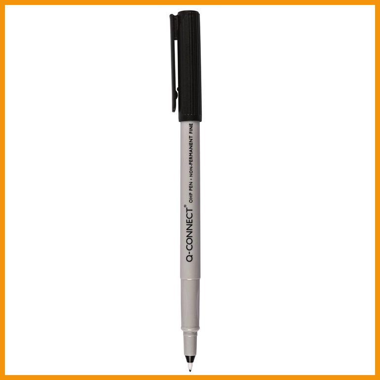 Q-Connectin piirtoheitinkynän muoviosien valmistuksessa on käytetty 50 % GRS-sertifioitua kierrätysmuovia. Kynän runko, suojakorkki ja kärki ovat muovia.Vesiliukoinen muste saa aikaan eläväiset värit ja kuivuu nopeasti niin paperilla ja kartongilla kuin piirtoheitinkalvoilla ja muilla sileillä pinnoillakin, kuten muovilla, lasilla, metallilla ja CD-levyillä.
