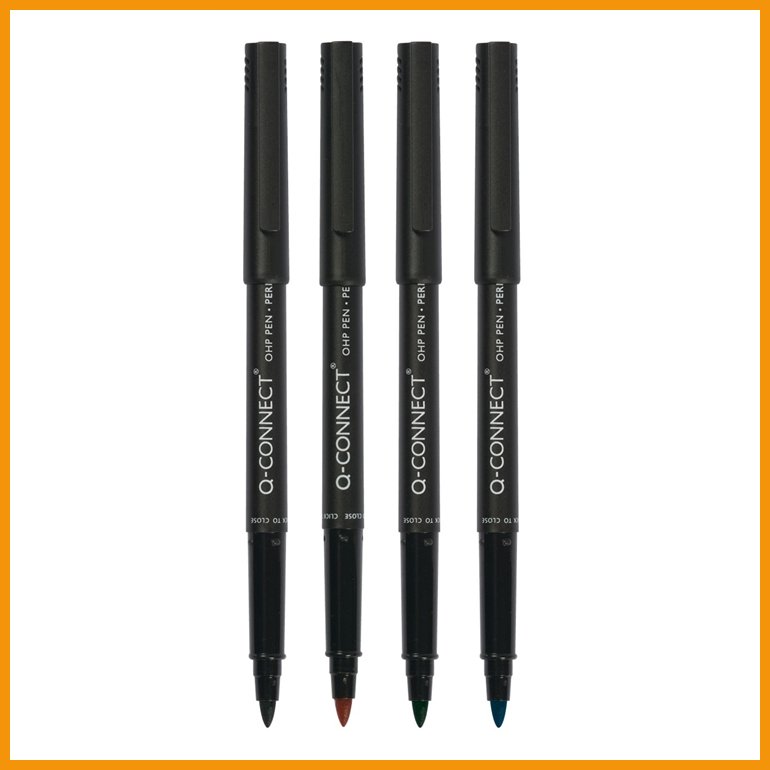 Q-Connectin piirtoheitinkynän muoviosien valmistuksessa on käytetty 50 % GRS-sertifioitua kierrätysmuovia. Muovirunkoisen kynän pysyvä ja valonkestävä muste tarttuu hanakasti ja kuivuu nopeasti niin paperilla ja kartongilla kuin piirtoheitinkalvoilla ja muilla sileillä pinnoillakin, kuten muoveilla, lasilla, metallilla ja CD-levyillä. Kärki on käyttöä kestävää akryylia ja suojakorkki muovinen.Musteen väri: musta, punainen, sininen ja vihreä