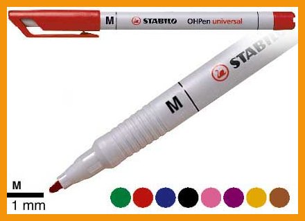 STABILO OHPen -merkkauskynä soveltuu lähes kaikenlaisten sileiden pintojen merkintään. Vesiliukoinen muste juoksee kevyesti eikä kynä kuivu 72 tuntiin, vaikka korkki unohtuisi auki. Jälki irtoaa kostealla pyyhittäessä. Ventiloidussa suojakorkissa on taskuklipsi.Erotat vesiliukoisen kynän pysyvämusteisesta vastineestaan harmaasta rungosta. Pysyvämusteisen version varsi on musta.