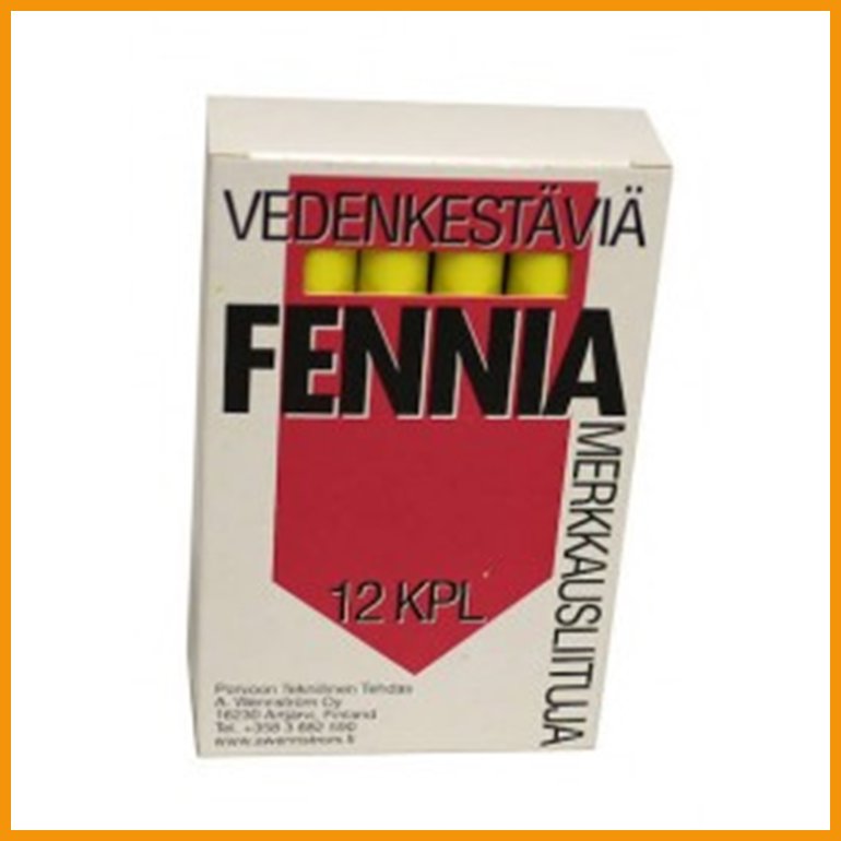 Kotimainen Fennia-merkkausliitu sopii veden-, valon-, lämmön- (sulamislämpötila noin 70 °C) ja säänkestävänäkin erityisesti karkeiden ja epäpuhtaiden pintojen merkintään. Tarttuu esimerkiksi puun, paperin, metallin, nahan, posliinin ja autonrenkaiden pintaan.Väri: keltainen