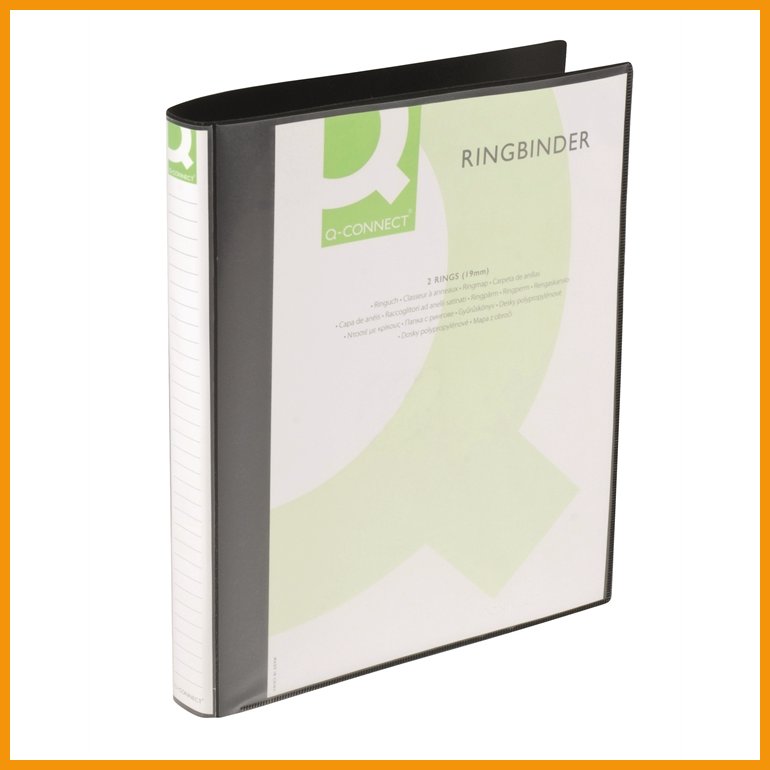 Q-CONNECTin minimappi on PP-muovista valmistettu rengaskansio A4-kokoisille papereille. Mapissa on kolme taskua: etukannessa A4-kokoinen tasku, sisäkannessa kulmatasku ja selkämyksessä täysmittainen etikettitasku. Mekanismin renkaiden sisähalkaisija on 20 mm ja ulkohalkaisija 25 mm.Koko: A4