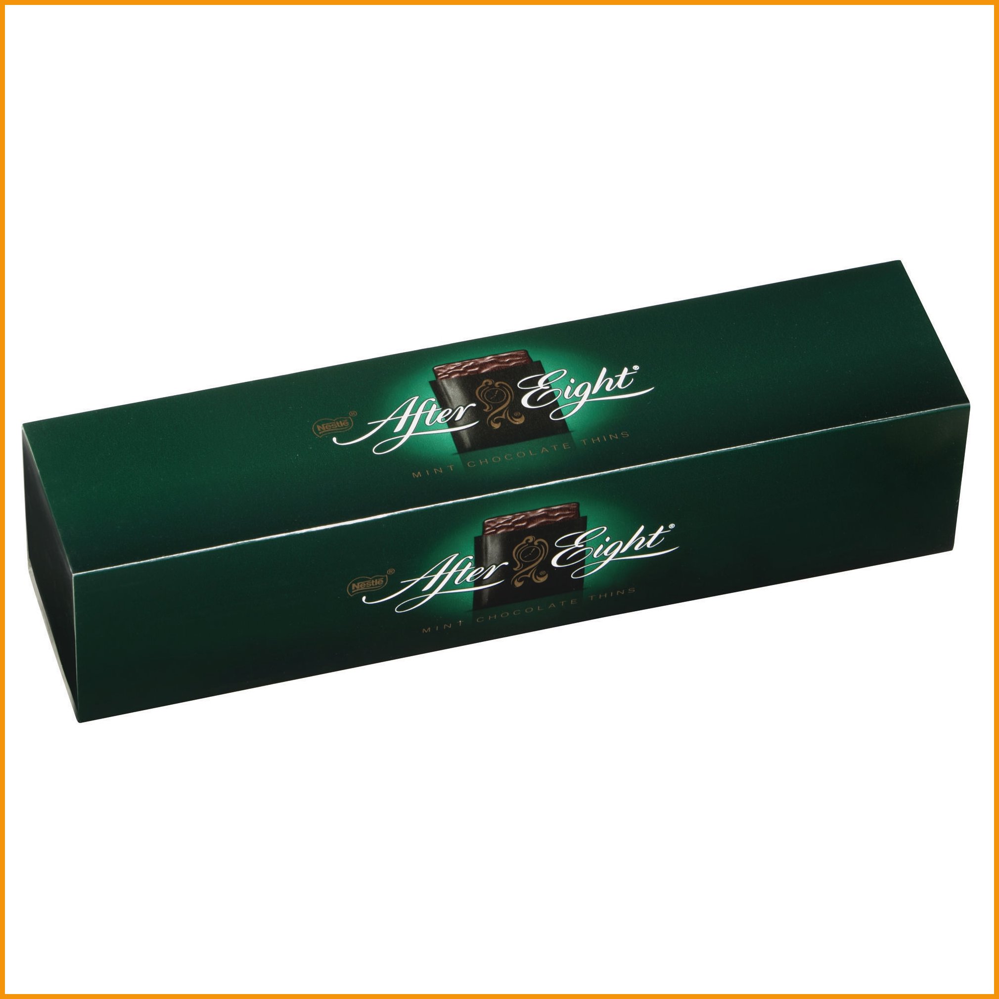 After eight on oikea valinta hienostuneeseen makuun! minttutäytteinen tumma suklaa sulaa suussa ja pienet yksittäispakkaukset ovat kauniita tarjollakin. Minttusuklaan minimitilaus 1. Tukkupakkauksessa 12.Minttusuklaa After eight 400g on korkeatasoinen tuote, jonka toimituksen kesto on verkkokaupasta tilattuna 1-2 päivää. Huomaa, että Toimitus on ilmainen kaikilla verkkokaupan ostoksilla, joiden hinta on yli 140 €. Meiltä voit tilata laskulla ja ilman rekisteröitymistä.