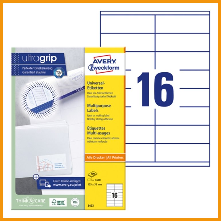 Averyn monikäyttötarrat soveltuvat niin kopiointiin kuin sekä laser- että mustesuihkutulostukseenkin ilman tukoksia tai mustetahroja. Tarroissa on tulostuksen laatua parantava Ultragrip-pinnoitus.