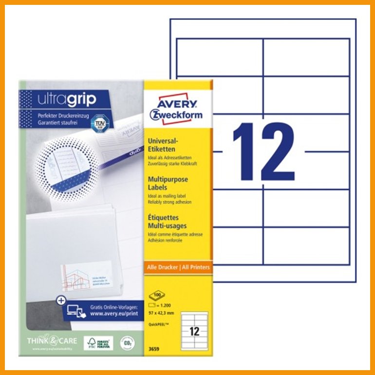 Averyn monikäyttötarrat soveltuvat niin kopiointiin kuin sekä laser- että mustesuihkutulostukseenkin ilman tukoksia tai mustetahroja. Tarroissa on tulostuksen laatua parantava Ultragrip-pinnoitus.