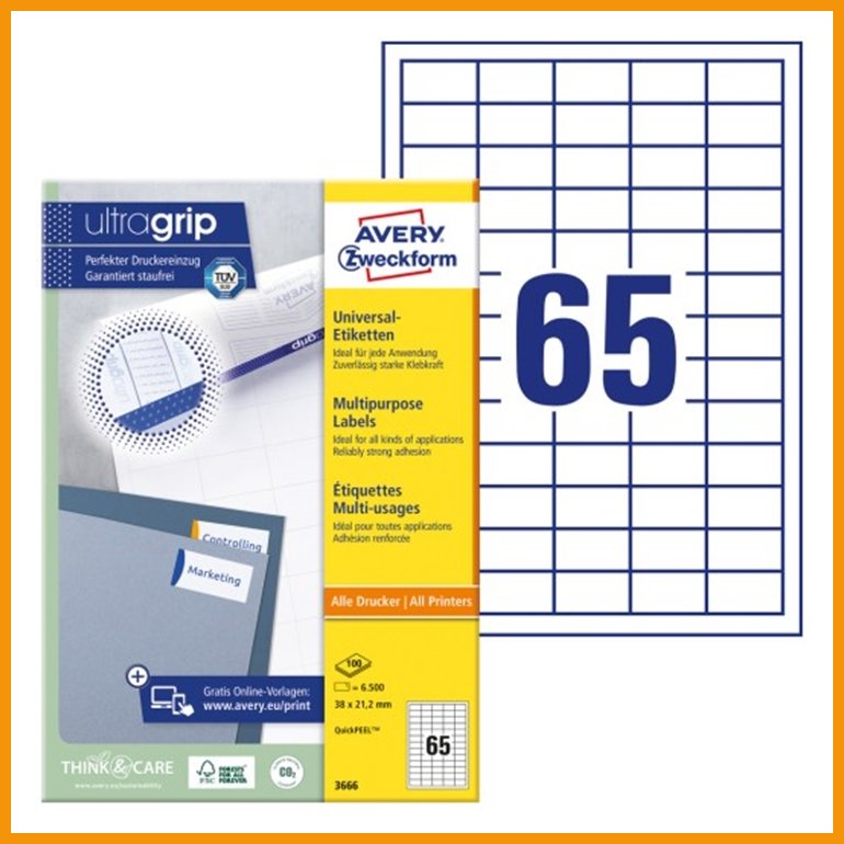 Monikäyttötarra Avery 3666 38 x 21,2 mm /6500 on upea toimistotuote, jonka verkkokaupan tilauksen toimitus kestää 1-2 päivää. Muistathan, että toimitus on ilmainen yli 140 € hintaisille verkkokauppa ostoksille! Meiltä voit tilata laskulla ja ilman rekisteröitymistä.