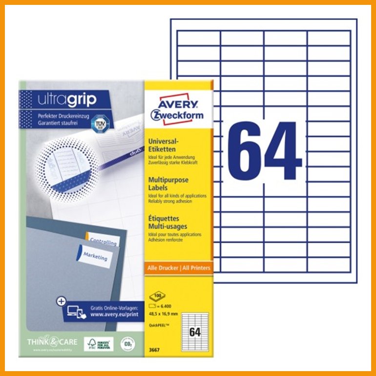 Averyn monikäyttötarrat soveltuvat niin kopiointiin kuin sekä laser- että mustesuihkutulostukseenkin ilman tukoksia tai mustetahroja. Tarroissa on tulostuksen laatua parantava Ultragrip-pinnoitus.