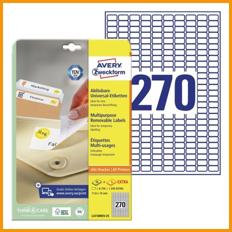 Averyn irtoavalla liimalla varustetut monikäyttötarrat soveltuvat niin kopiointiin kuin sekä laser- että mustesuihkutulostukseenkin ilman tukoksia tai mustetahroja. Tarrat irtoavat tarvittaessa ilman liimajäämiä tai tahroja.
