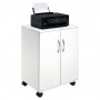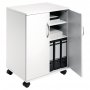 Siirreltävä toimistolaatikosto, joka on varustettu ovilla. sopii erityisesti toimistoihin, konfferenssitiloihin tai muunneltaville työpisteille tulostimien ja muiden toimistotarvikkeiden säilytykseen. kaksi kiinteää hyllyä ja kaksi muunneltavaa hyllyä sekä kaappi on valmistettu 16 mm paksuista kestävistä puulevyistä. jokainen hylly kestää enintään 30 kilon painoa. 4 kääntyvää pyörää, joista kahdessa jarrut. helppo siirtää ja pysyy jykevästi paikallaan silloin, kun jarrut ovat lukossa. toimitetaan litteänä pakettina varustettuna kasausohjeilla. mitat: 528 x 400 x 748 mm (lxsxk).