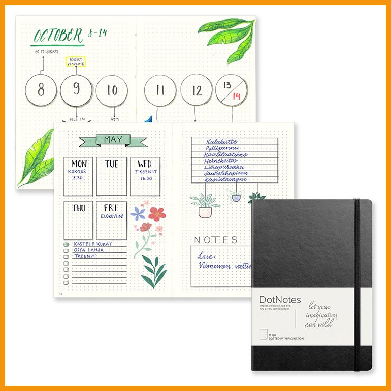 Burde DotNotes -muistikirjassa on pehmeät keinonahkakannet, tyylikkään kermanväriset sivut ja kuminauhasuljenta. Numeroidut pistesivut (1-186) soveltuvat niin tehtävälistojen tekemiseen, muistiinpanojen kirjoittamiseen kuin vaikka piirtämiseen ja luonnosteluunkin. Sisältösivu toimii hakemistona.Kirjan sivut on valmistettu FSC-sertifioidusta puuaineksesta ja paperi on happovapaata.