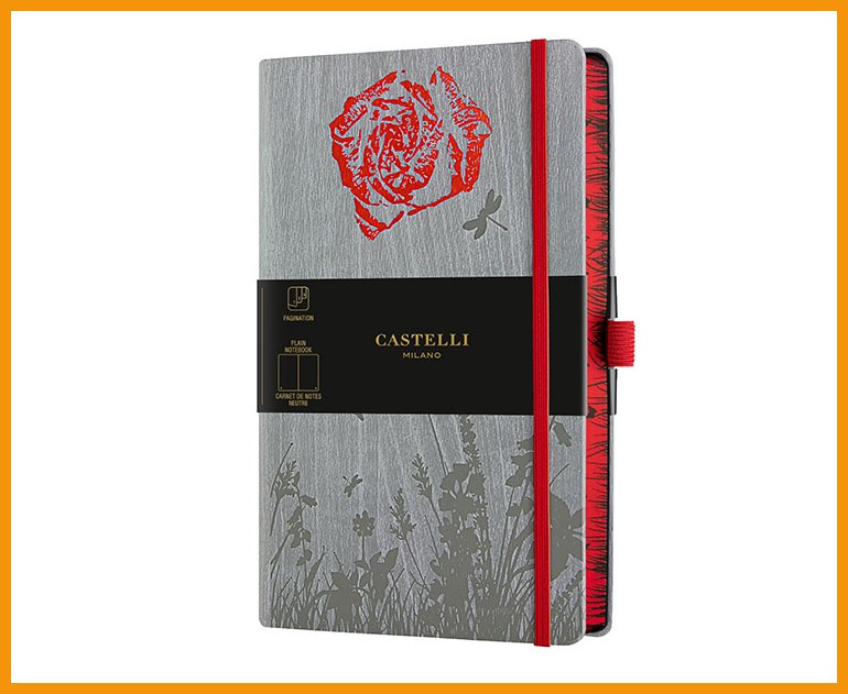 Castelli Milanon muistikirjat ovat sekä käytännöllisiä että tyylikkäitä. Blankot norsunluunväriset sivut on sivunumeroitu. Kovakantisessa kirjassa on sisällysluettelo, kuminauhasuljenta, kynälenkki, dokumenttitasku ja kirjanmerkkinauha.Kirjan sivut on valmistettu FSC-sertifioidusta puuaineksesta.