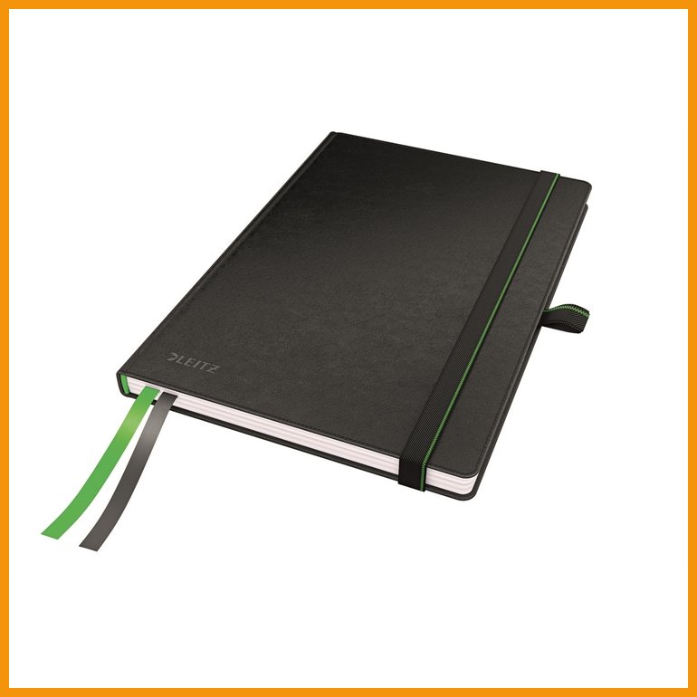 Kovakantisessa Leitz Complete -muistikirjassa on kaikki perinteisen muistikirjan ominaisuudet ja paljon muuta. Kirjassa on mm. keinonahkaiset kannet, taskut etu- ja takakannessa, kaksi kirjanmerkkinauhaa, kaksi merkintätarraa, kuminauhasuljenta ja elastinen kynälenkki. Norsunluunväriset sivut on viivoitettu. Kahdeksan viimeistä sivua on perforoitu, ja ne toimivat tarvittaessa irrotettavina muistilappuina.Muistikirjan sivut on valmistettu FSC-sertifioidusta puuaineksesta.