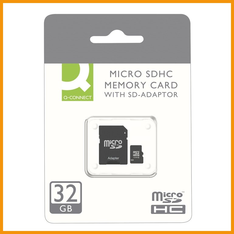 Q-Connectin Micro SDHC-muistikortin mukana tulee täysikokoinen SD-adapteri, jonka avulla se sopii sekä MicroSD- että SD-muistikorttipaikkoihin. Tällaisia tuotteita ovat esimerkiksi monet kamerat, iPadit, MP3-soittimet ja älypuhelimet.Kapasiteetti: 32 GB