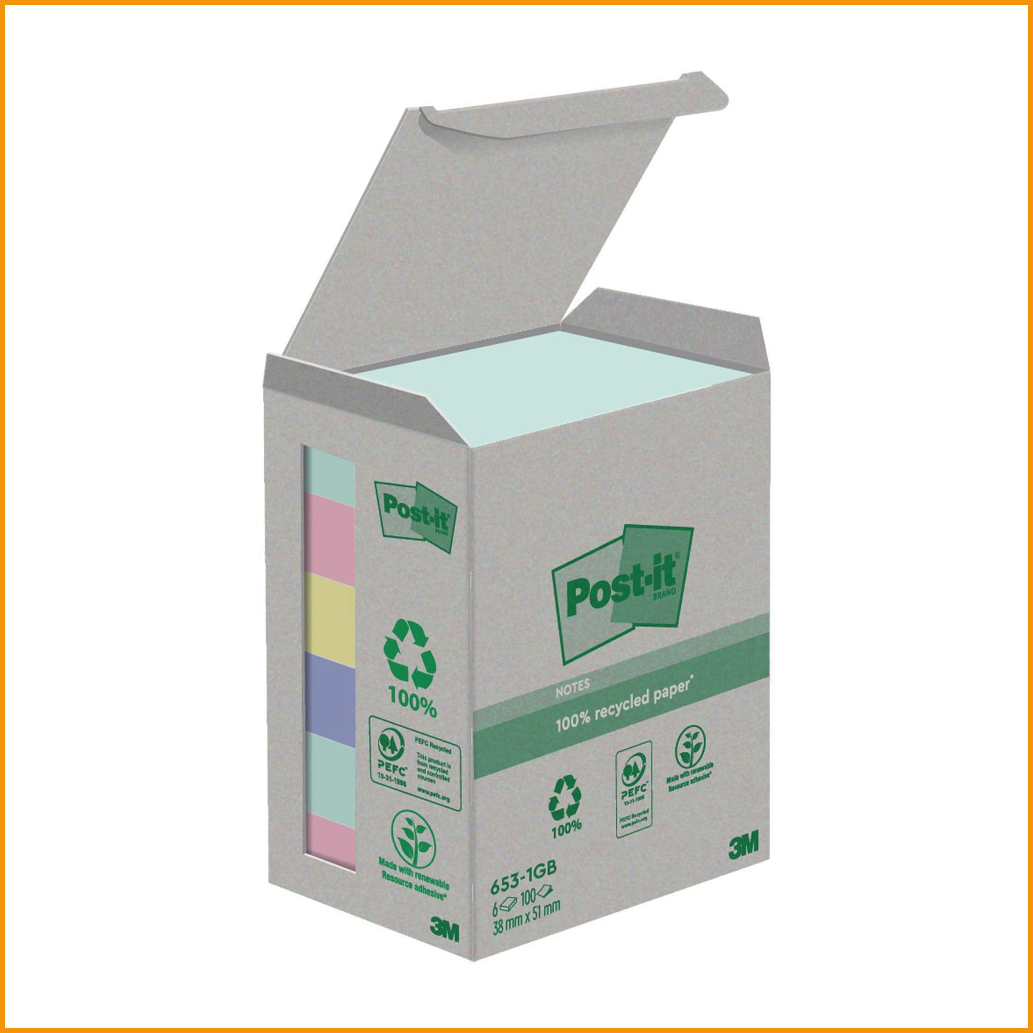 Muistilappu Post-it® eko 38 x 51mm värilajitelma 6kpl tuotetiedot