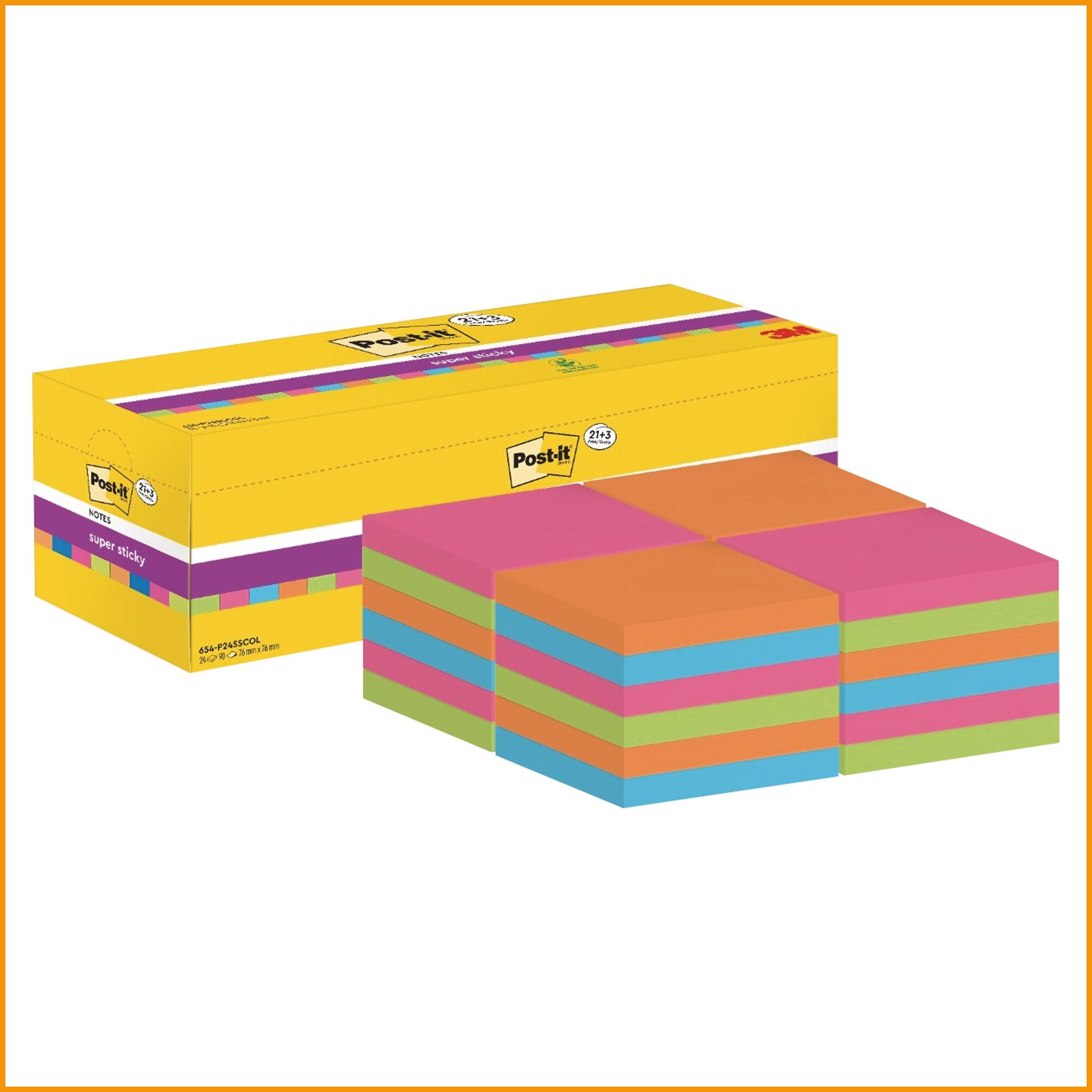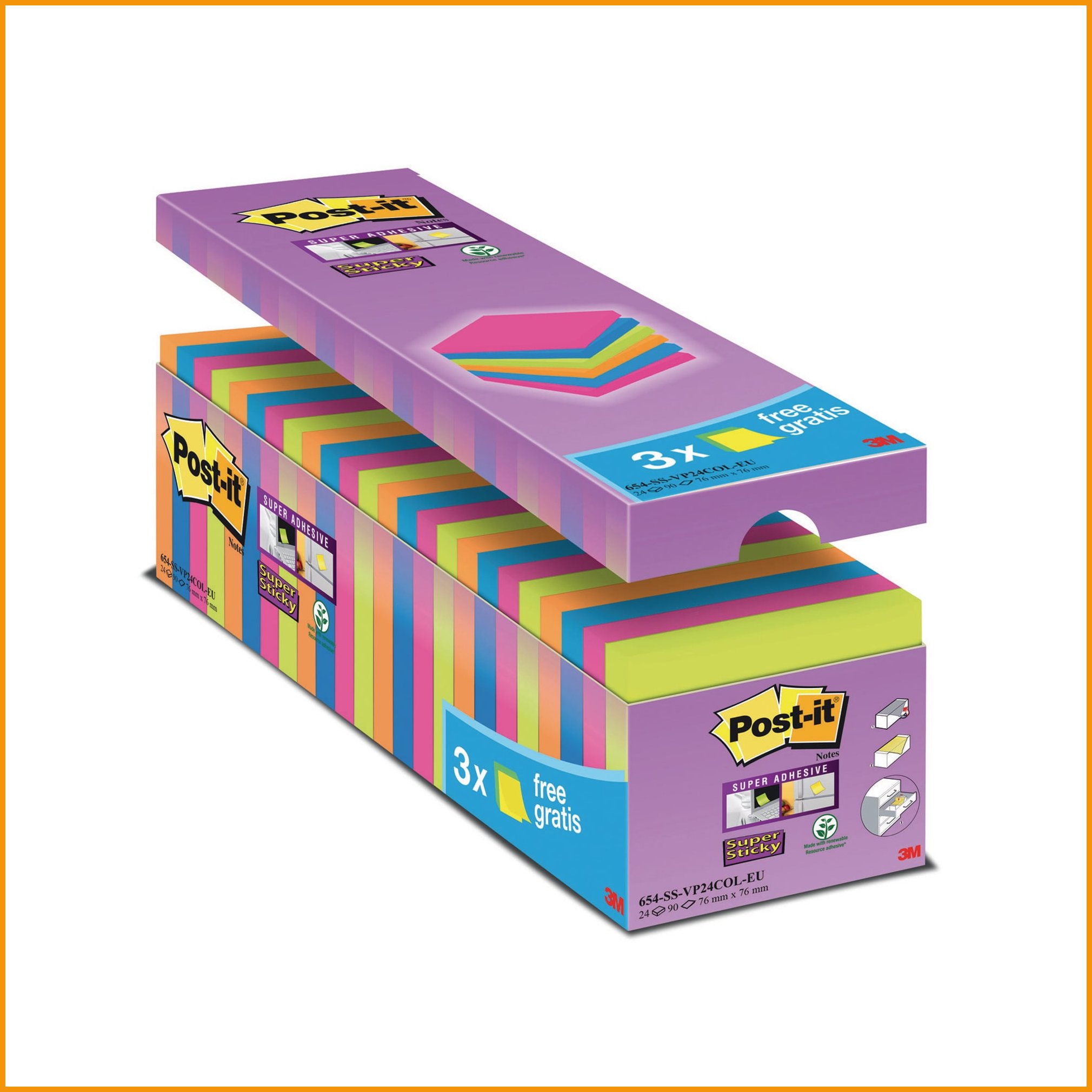 Post-it lappu super sticky 76x76mm värilajitelma 24 nidettä värikkäät post-it muistilaput voi kiinnittää useampaan kertaan lähes mihin tahansa. Nyt 2160 muistilappua edulliseen hintaan. Muistilaput eivät vahingoita alustaa.