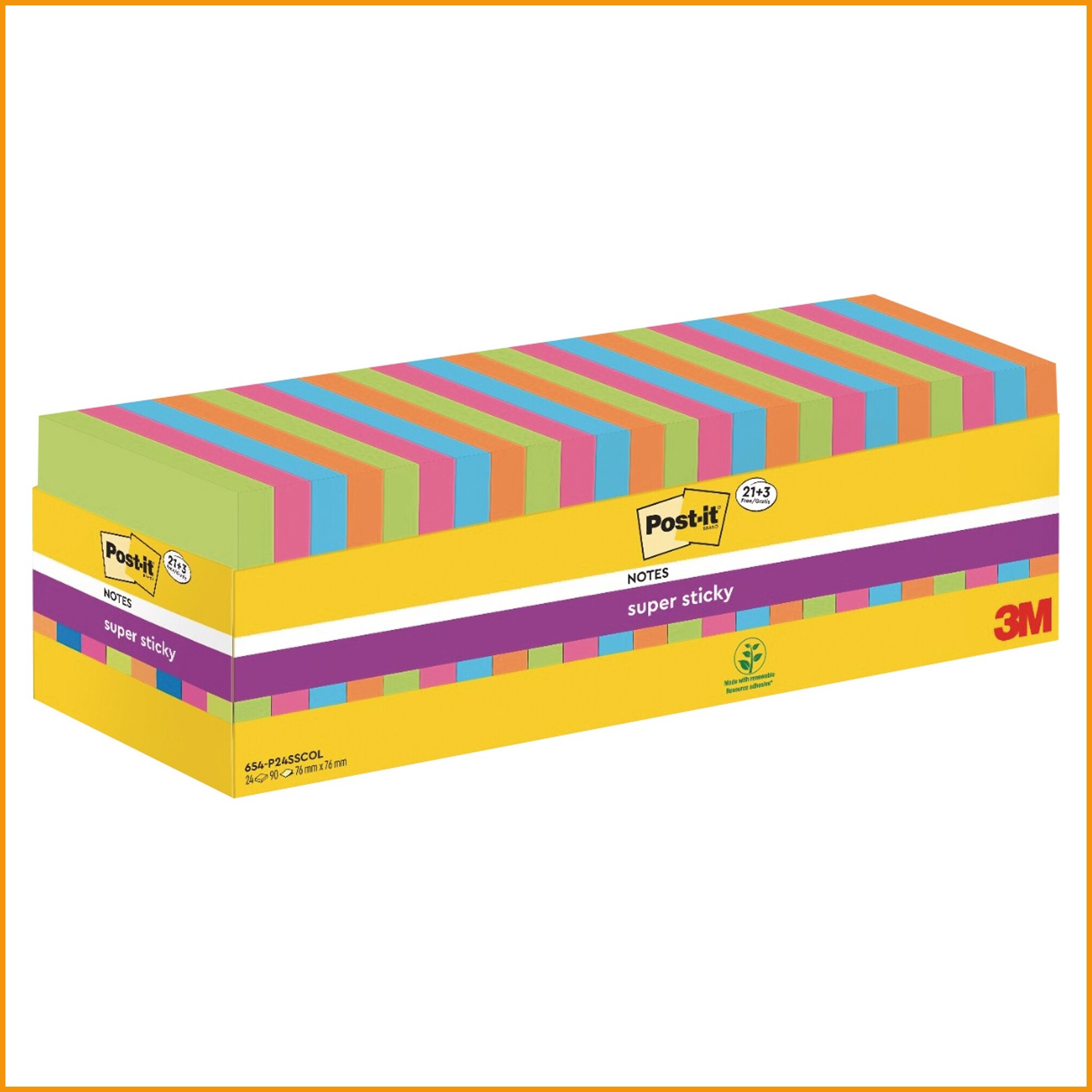 Muistilappu Post-it® super sticky 76 x 76mm värilajitelma 24kpl hinta 35,64€