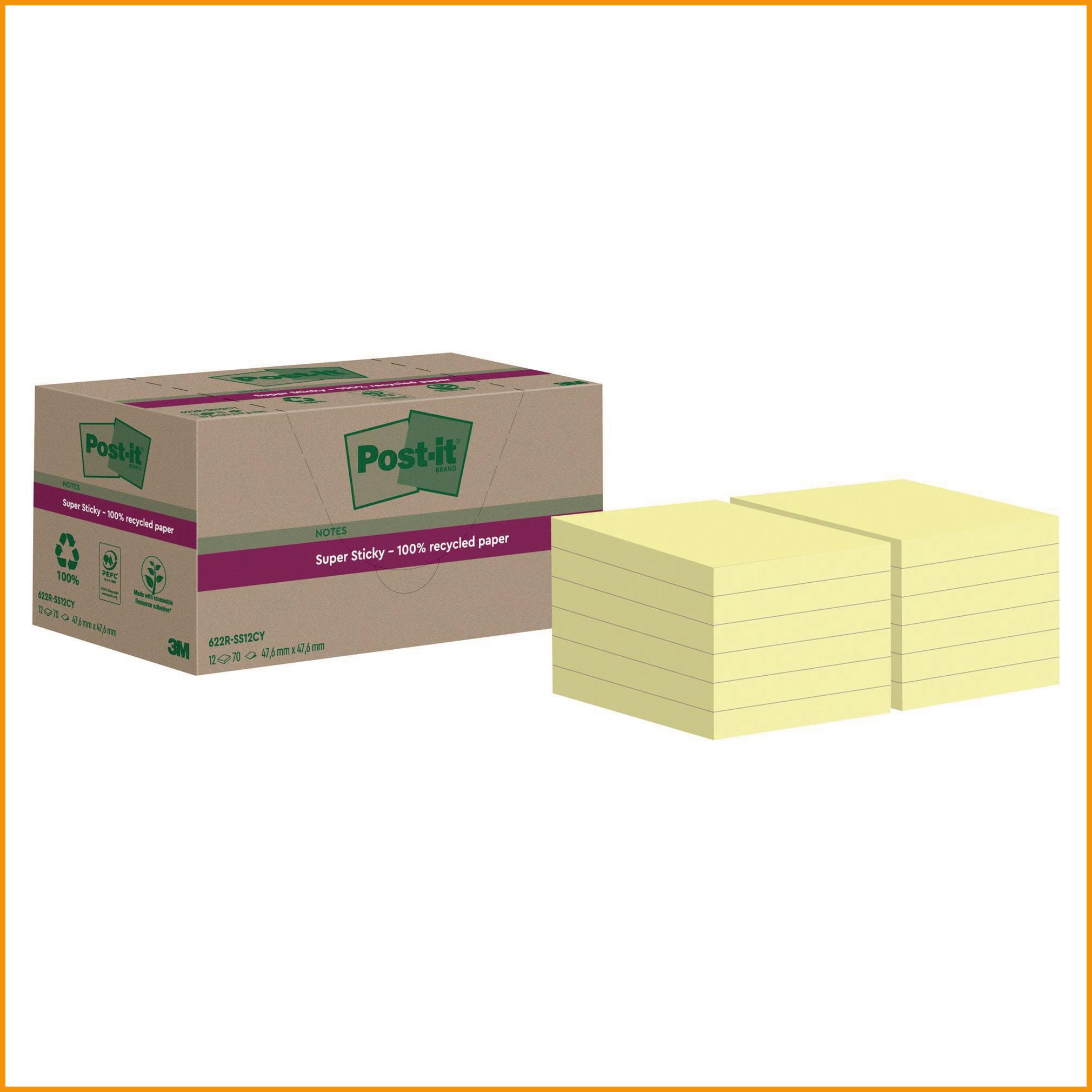 Muistilappu Post-it® super sticky eko 47,6 x 47,6 mm keltainen 12kpl hinta 9,91€