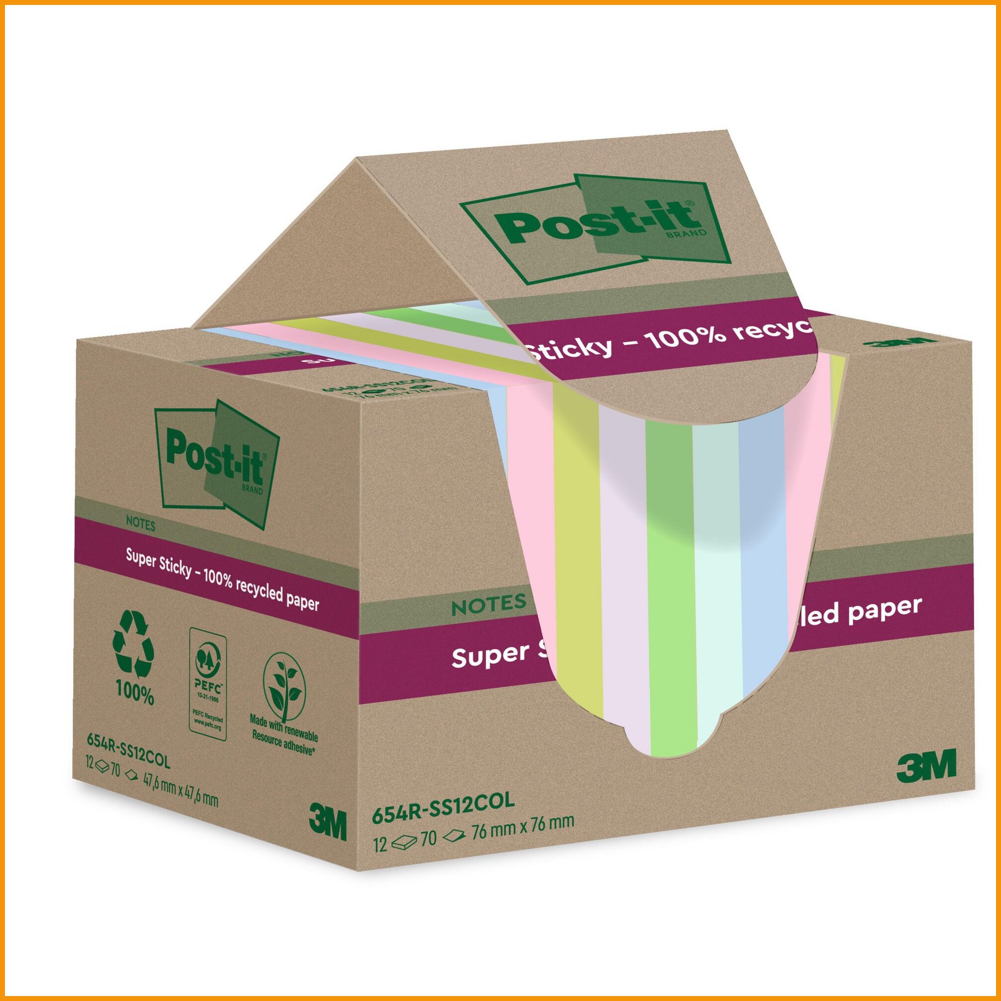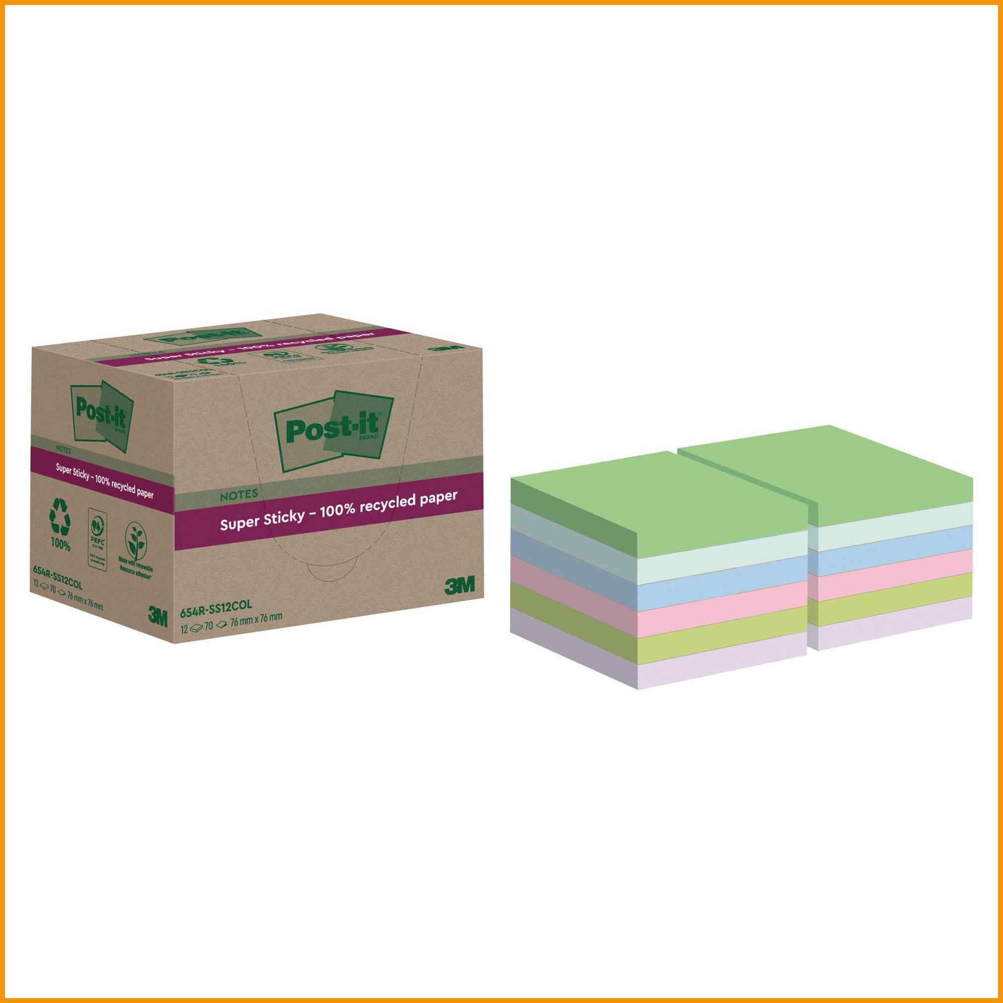 Muistilappu Post-it® super sticky eko 76 x 76 mm värilajitelma 12kpl hinta 20,71€