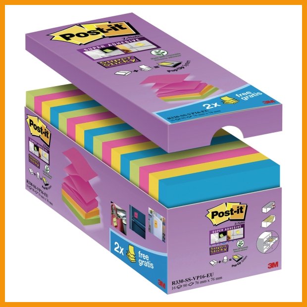 Muistilappu Post-it® super sticky z-notes 76 x 76mm lajitelma 16kpl on laadukas toimistotarvike, jonka toimitus hoidetaan heti kun sitä saapuu varastoon (1-2 viikkoa).